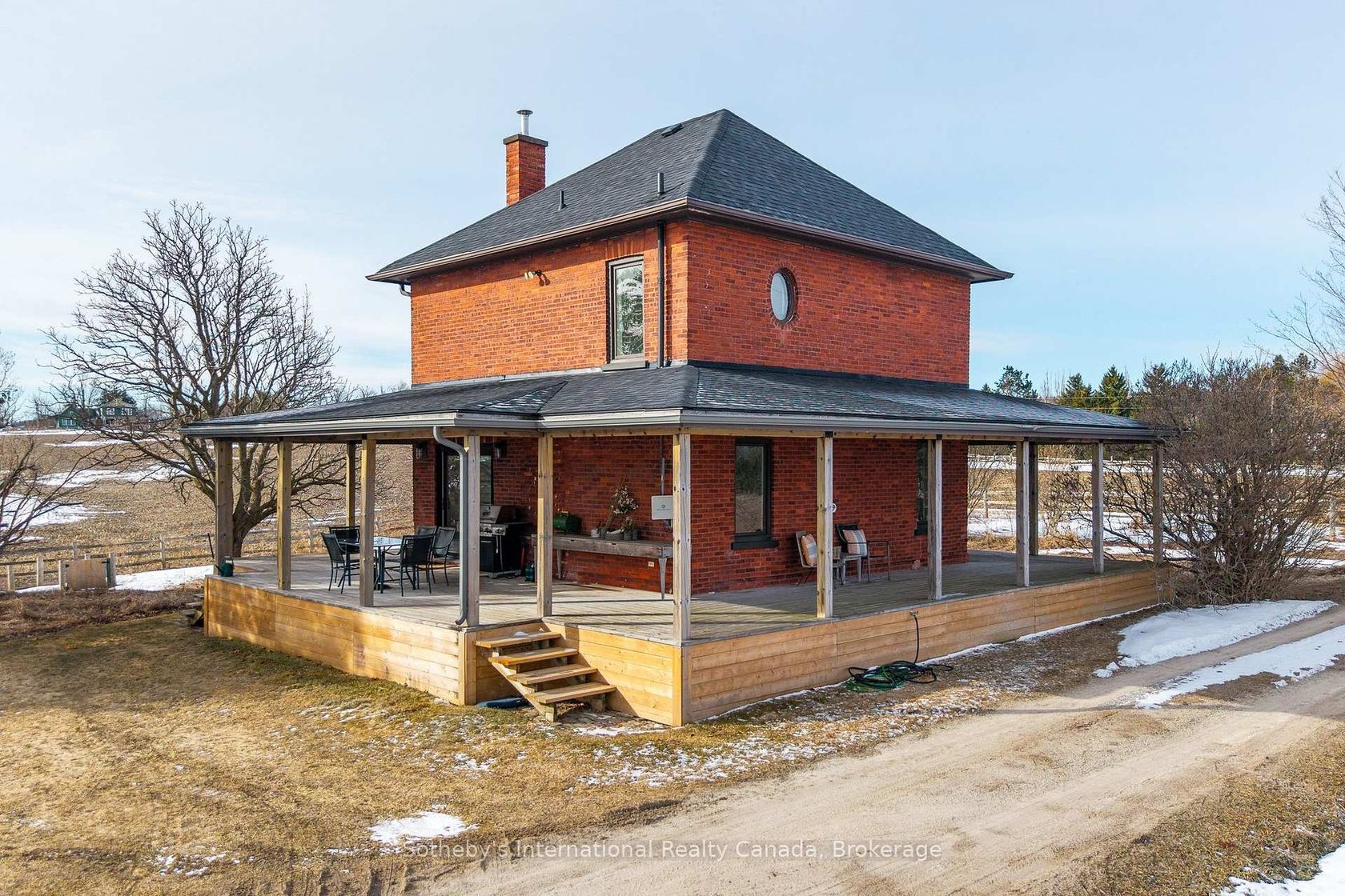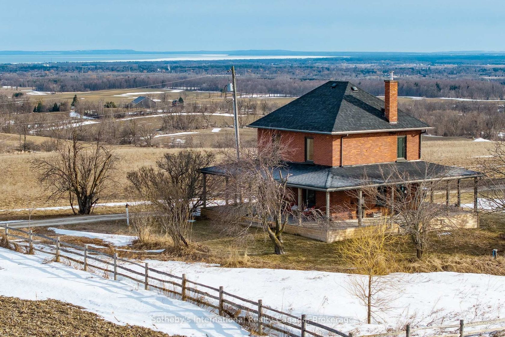 Perched on an elevated area along the scenic Fairgrounds Road this charming 130+ year-old country home sits on approximately 2.5 acres with remarkable views across the countryside and direct to the bay. Enjoy stunning sunrise and sunset vistas from the property's open setting. Set well back from the road and surrounded by beautiful farms, farmland and estate homes, the location is peaceful and private. The red brick farm home features an open concept layout on the ground floo…r with lovely pine floors, exposed brick accents, a bright, renovated kitchen with walkout to a wrap around verandah. The home has three bedrooms, and one modern bathroom. The property has a small apple orchard and fenced vegetable garden. The home is only a short drive away from Creemore and Collingwood, ski hills (Blue Mountain and Devil's Glen), golf (Mad River) and Wasaga/Georgian Bay beaches. A rare opportunity to own a manageable country acreage in one of Clearview's most desirable rural locations.
