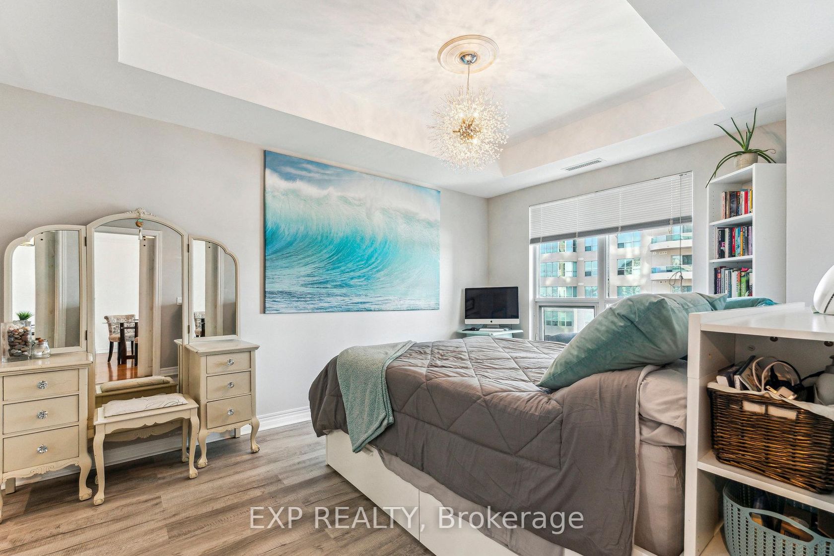 Welcome to Water View Condominiums, perfectly situated on the waterfront of Kempenfelt Bay on Lake Simcoe. This beautiful Sandpiper model at 6 Toronto Street in Barrie offers approximately 900 sq. ft. of bright, well-designed living space with 1 bedroom and 1.5 bathrooms. With desirable southern exposure, the suite is filled with natural light throughout the day. The open-concept layout provides excellent flow and features a walkout to a private balcony overlooking Barrie's m…arina, boardwalk, and scenic waterfront trails. The kitchen is thoughtfully designed with a breakfast bar, full appliance package, and plenty of storage. The spacious primary bedroom features his and hers closets and a 4-piece ensuite with a jetted soaker tub and glass-enclosed shower, while a convenient 2-piece guest bath and in-suite laundry enhance the suite's functionality and comfort.Residents enjoy an impressive selection of resort-style amenities including an indoor pool, hot tub, sauna, fitness centre, party room, games room, library, guest suites, outdoor pond, change rooms with showers, and visitor parking. The building also features updated common areas, a welcoming lobby lounge, and secure entry. Located just steps from Barrie's vibrant downtown, you'll enjoy easy access to shopping, restaurants, entertainment, and year-round waterfront activities. Barrie GO Transit, public transit, and Highway 400 are also nearby, making commuting to the GTA or escaping north to Muskoka simple and convenient. Experience carefree waterfront living in one of Barrie's most desirable condo communities.