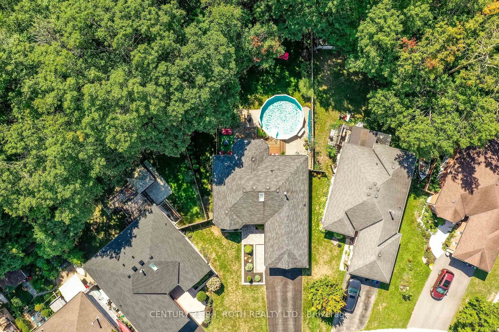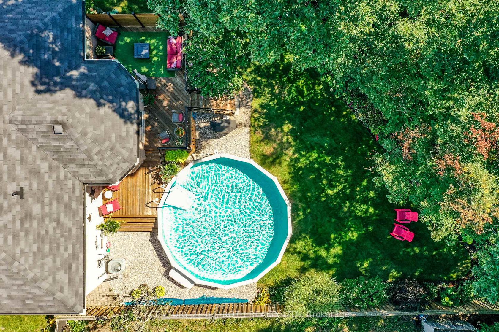 Welcome to 91 Benson Drive, an impeccably updated 3-bedroom bungalow set on a stunning, private, landscaped lot with no neighbours behind! Nestled in a sought-after, family-friendly neighbourhood in Barrie, this home is within walking distance to highly regarded schools and offers easy highway access for commuters. Lovingly maintained and presented in pristine condition, this home welcomes you with a bright foyer that opens into a spacious, light-filled living room. At the heart of the home is a professionally designed custom eat-in kitchen (2019), featuring a large island with quartz countertops, abundant cabinetry, a built-in custom table, and quality finishes throughout. The dining area offers a walkout to a newer custom deck overlooking the fully fenced backyard, backing onto peaceful green space and complete with an above-ground pool, perfect for relaxing or entertaining. The main level includes a generous primary bedroom with a private ensuite, along with two additional well-sized bedrooms and a stylish, updated 4-piece bathroom. Downstairs, the open-concept great room with a cozy fireplace provides the perfect space for family time or entertaining, along with a convenient 3-piece bathroom and a versatile murphy bed-ideal for guests or maximizing space. Extensive updates offer peace of mind, including furnace (2015), roof (2016), renovated lower bathroom (2017), and a full main floor and kitchen renovation (2019). Exterior upgrades include new eavestroughs, fascia, and leaf guards (2020), a new front door and garage doors (2021), and a beautifully updated ensuite (2021). Additional improvements include new windows and patio door (2022) and a new water softener (2022). This move-in-ready home seamlessly blends modern updates, thoughtful design, and exceptional value.