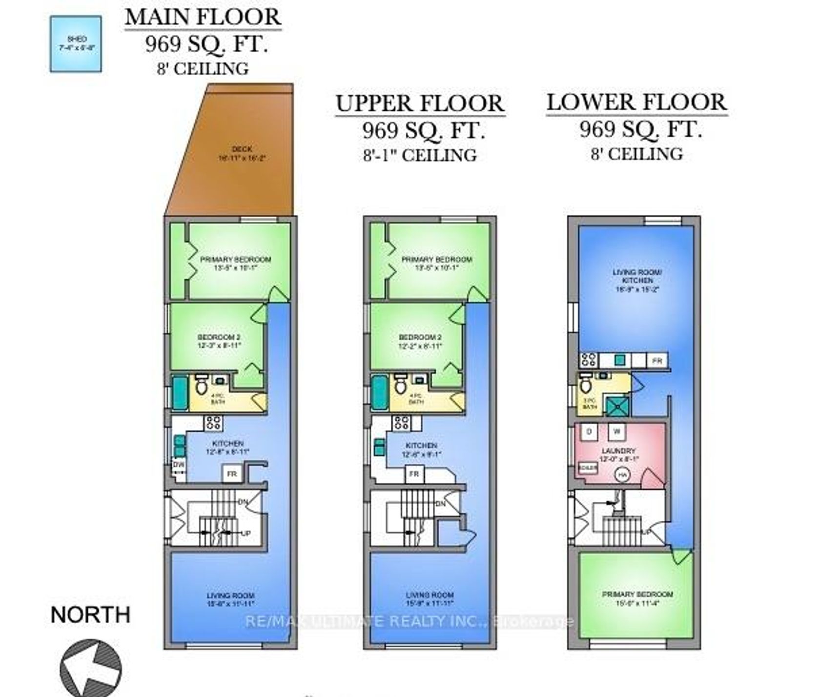 Fabulous Purpose-Built Modernist Montreal-Style / European-Style Brick Triplex in The Junction - 2,900 sq ft of Turnkey Living on a Coveted Tree-Lined Street. LOCATION, LOCATION, LOCATION! This property provides exceptional rental income with many possibilities: live in the spacious main floor suite while generating revenue from the 2 additional units, explore multi-family living, or maintain it as a lucrative investment. Both the upper & main floor suites are bright, expansive, and 969 sq ft, each featuring 2 bedrooms, updated 4-pc bathrooms, generous living rooms, & eat-in kitchens with quartz counters & subway tile backsplashes. The main floor unit is vacant, offering an excellent opportunity for personal occupancy or a new tenant at market rates. The lower level, also 969 sqft & fully renovated in 2013, boasts 8-ft ceilings, large above-grade windows, an open-concept living/dining/kitchen area, 1 bedroom, & a 3-pc bathroom. Current rent is $2,359/month for the upper unit, with the lower, and main floor are vacant, offering strong income potential. All units are separately metered with an interconnected fire alarm system, fire-rated doors, & a solid block party wall for sound privacy. The exterior features a private, wide 4-car driveway & a solid block/brick 2-car garage, ideal for a garden suite. The entertainer's backyard has a custom elevated deck shaded by a Maple Blaze tree. Both front & back yards are professionally landscaped with low-maintenance trees/bushes, custom garden planters, & lockable bike storage for 6 bikes. This prime location is walking distance to high-ranking schools like Humberside CI, High Park, High Park Zoo, Bloor West Village, and The Junction's trendy cafes, restaurants, & shops. Major attractions & public transit are five minutes away. Recent updates include shingles (2018), soffits, gutters, & leaf protectors (2019), & all windows (2013). This is a rare find! VTB possible; terms apply.