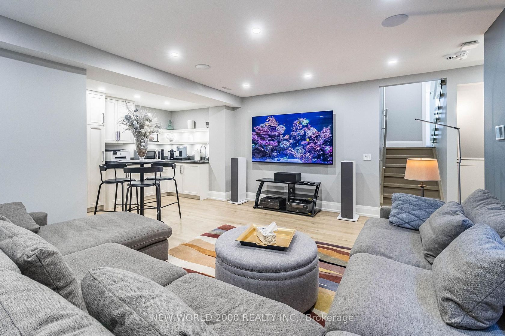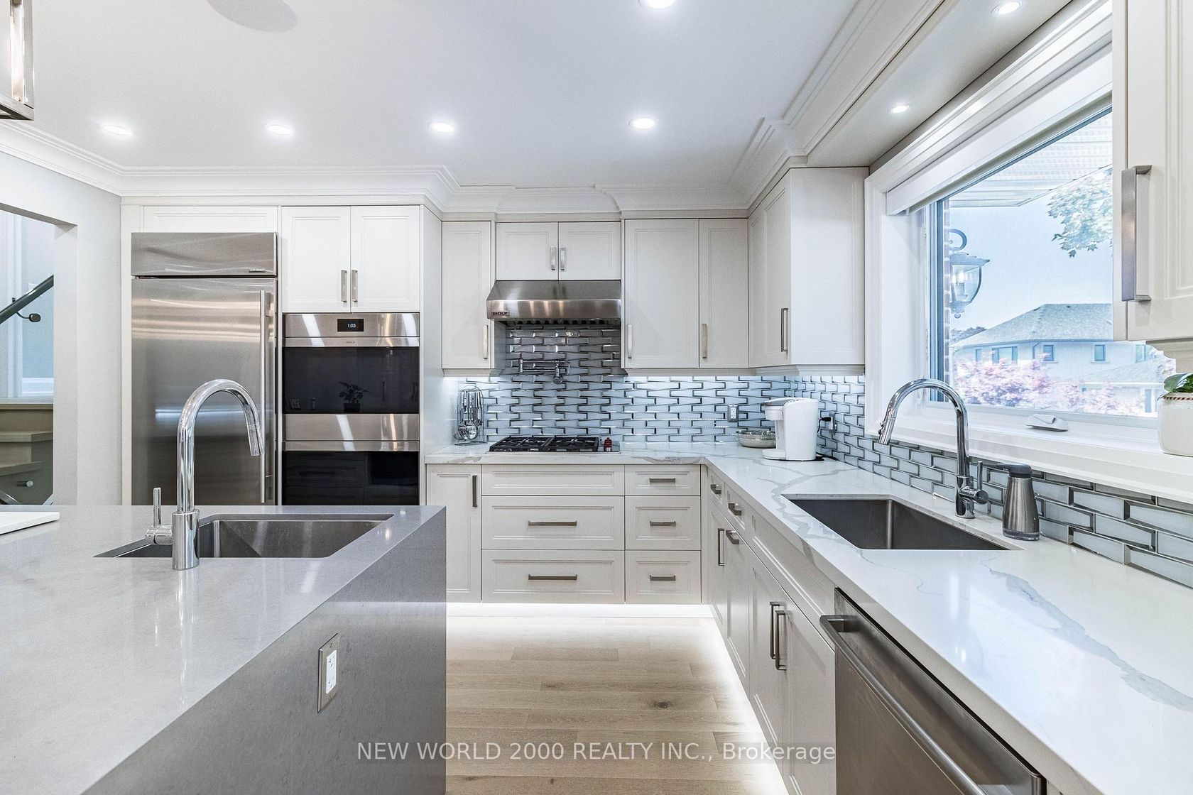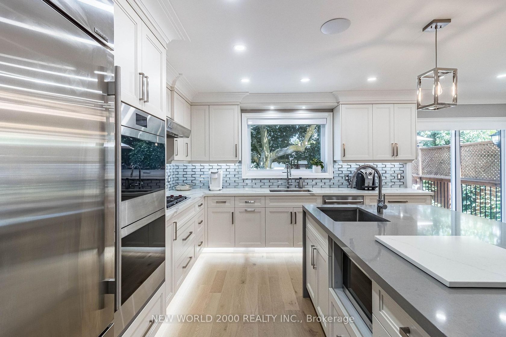 Luxury Living Awaits You! Step into a world of elegance and comfort with this stunning home that boasts exquisite features designed for modern living. From the moment you enter, you'll be captivated by the hardwood floors that flow throughout and the stylish marble and ceramic tile in all bathrooms. Indulge your culinary desires in a kitchen that's a chef's dream! Featuring quartz countertops, full-height cabinets, and a large island with a with a sleek waterfall countertop and sink, its perfect for entertaining. Equipped with a top-of-the-line Sub-Zero and Wolf appliances, including double ovens, this kitchen is both functional and luxurious. Retreat to the main bathroom, where you'll find marble tops and a powered jet bathtub for ultimate relaxation. All showers are elegantly designed with glass enclosures, rainfall shower heads, and handheld wands for a spa-like experience. Enjoy the cozy ambiance of 2 remote-controlled fireplaces, one in the living room and another in the recreation room. The lower level also features a convenient kitchen with a fridge and sink, ideal for gatherings. Stay connected and entertained with speakers in every room, a surround sound system in both the living and basement areas and a Control 4 app for seamless audio control. Security is paramount with a front doorbell camera, 4 exterior cameras, and a fully monitored alarm system. This home is a smart sanctuary with fully automated blinds, boosted WiFi, and tankless hot water. All new PVC plumbing and electrical systems ensure peace of mind, while elegant touches like crown moulding, under-cabinet lighting and built-in closets elevate the aesthetic. Step outside to a beautifully landscaped yard featuring a backyard deck, a new driveway, and a stunning veranda with interlocking stone. The front lawn irrigation system keeps your space lush and vibrant year-round. This home is not just a residence; its a lifestyle. Don't miss this opportunity to make this dream home yours!