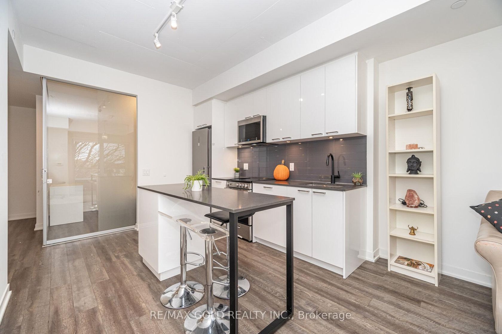 This cozy 2-bedroom 2-bathroom corner suite at Reunion Crossing Condos has an open concept kitchen + living room with natural light. The suite is maximally quiet and private. Its Large 90 Sq Ft balcony is fully enclosed & not overlooked from any side. The windows from floor to ceiling face the north and reveal a pleasant view which will not be disturbed in the future. The kitchen has enough storage cabinets for people who cook. All fixtures and fittings are from the upgraded… line. Stainless steel makes the appliances easy to clean and last longer. The quartz countertops are more durable than standard ones. The subway tile backsplash will last and be easy to clean. The island counter with a breakfast bar is multifunctional. The master bedroom has a closet with shelves, hanging rails, and a mirror. The second bedroom can serve many purposes with its closet and wall that allows light in. The suite has a stacked washer + dryer and 1 storage locker on the parking level. The building has a bicycle storage room, an urban room for many purposes, a parcel room, a games area in the lobby, a modern gym, a party room, a ground-floor patio with a BBQ, a pet station, and a rooftop terrace with a BBQ and space for gardening. All this is a fantastic deal with Internet from Rogers included in the maintenance fees. The 512 St Clair streetcar stops outside the building. TTC buses connect the building to Subway Line 2, Bloor GO station Eglinton LRT in about 10 minutes. The Stockyards neighborhood offers cafés, restaurants, banks, shopping streets, a public library & parks. This totally private suite at Reunion Crossing Condos will be a great asset to anyone who buys it. Amenities: Modern fitness centre, Party room with kitchen/lounge, Games area, Ground-floor outdoor patio with BBQ, Rooftop terrace with BBQ + community gardening space, splash pad, bicycle storage room, Parcel delivery room, Urban multi-purpose room, Pet wash station, Secure storage lockers, Rogers high-speed internet