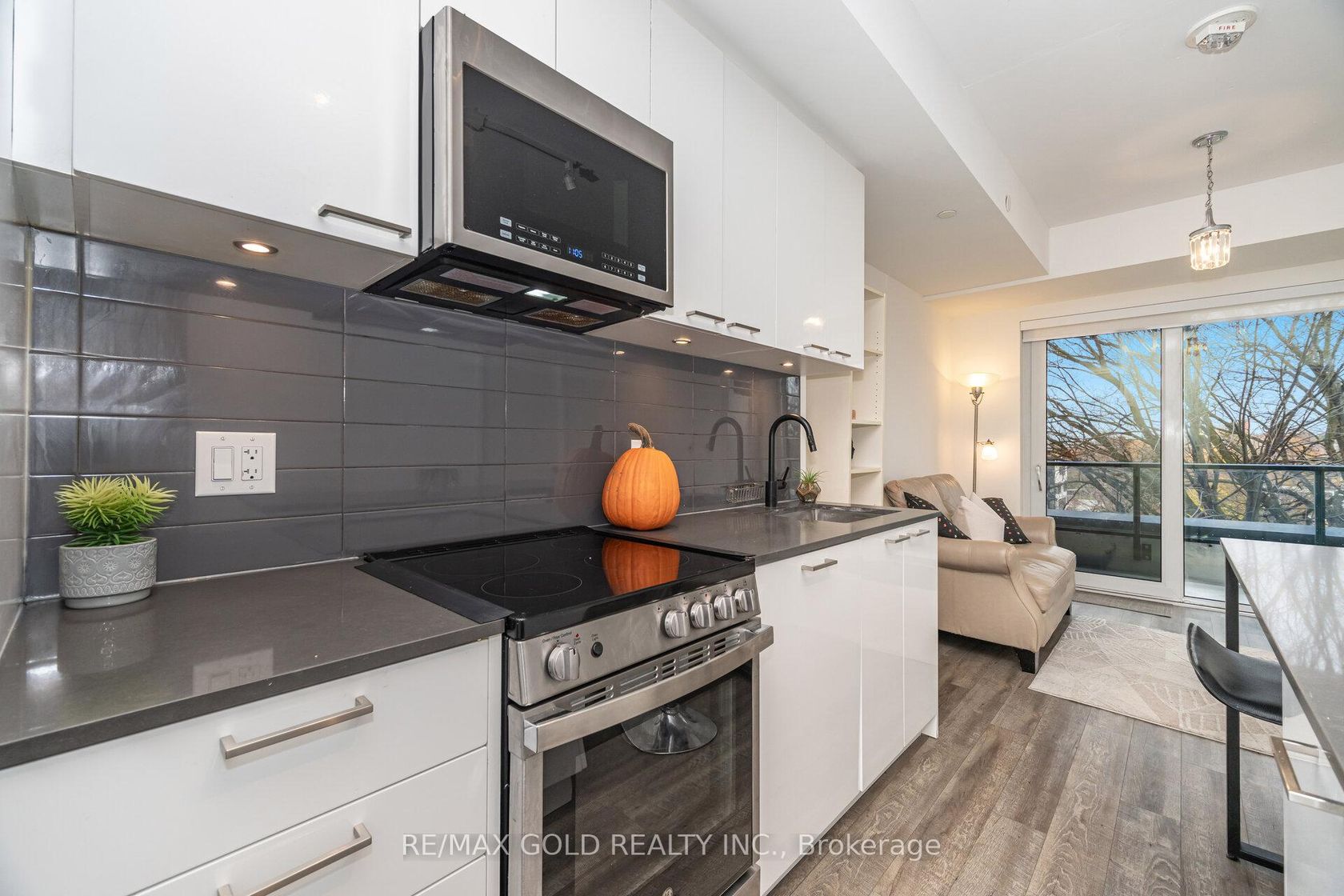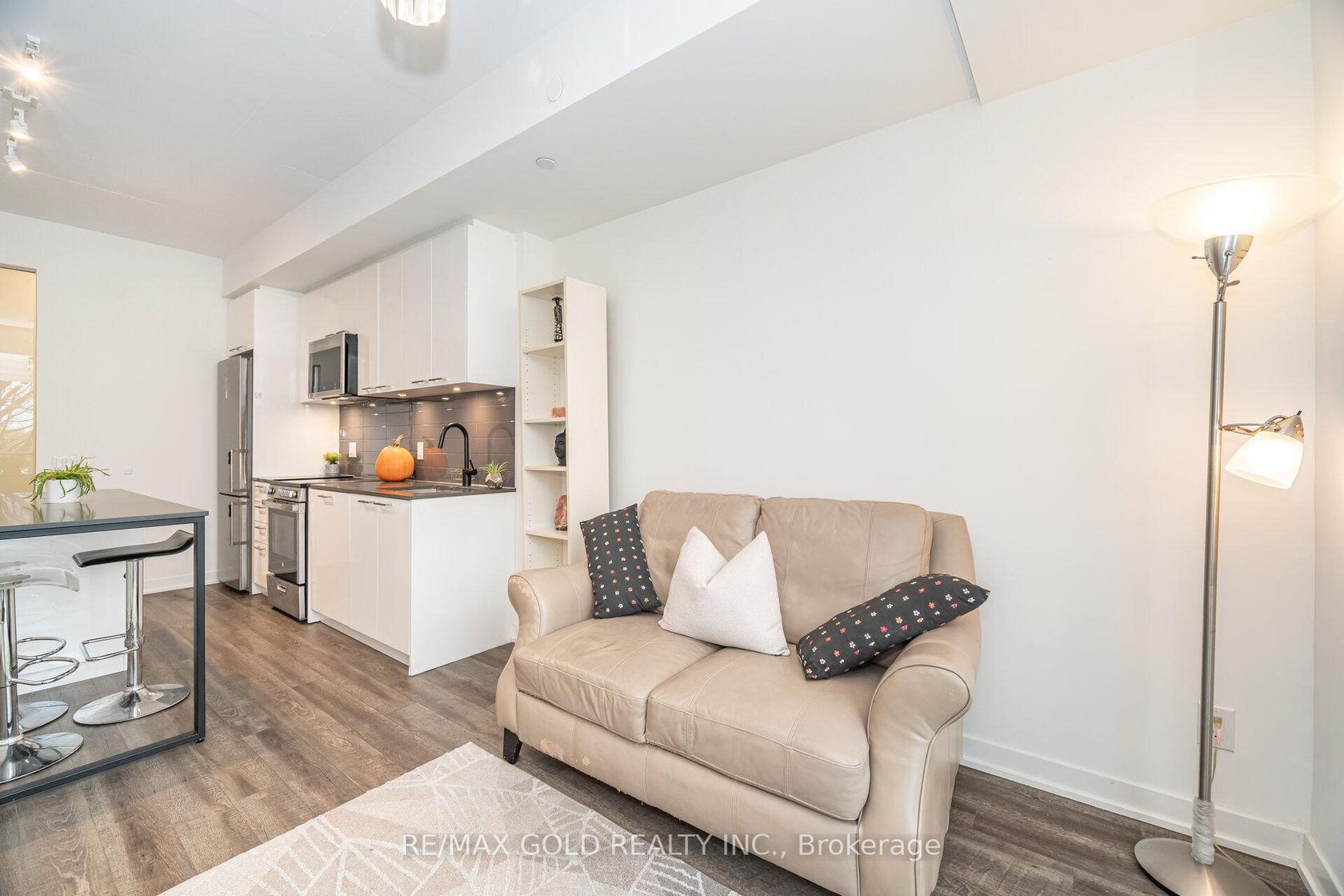 This cozy 2-bedroom 2-bathroom corner suite at Reunion Crossing Condos has an open concept kitchen + living room with natural light. The suite is maximally quiet and private. Its Large 90 Sq Ft balcony is fully enclosed & not overlooked from any side. The windows from floor to ceiling face the north and reveal a pleasant view which will not be disturbed in the future. The kitchen has enough storage cabinets for people who cook. All fixtures and fittings are from the upgraded line. Stainless steel makes the appliances easy to clean and last longer. The quartz countertops are more durable than standard ones. The subway tile backsplash will last and be easy to clean. The island counter with a breakfast bar is multifunctional. The master bedroom has a closet with shelves, hanging rails, and a mirror. The second bedroom can serve many purposes with its closet and wall that allows light in. The suite has a stacked washer + dryer and 1 storage locker on the parking level. The building has a bicycle storage room, an urban room for many purposes, a parcel room, a games area in the lobby, a modern gym, a party room, a ground-floor patio with a BBQ, a pet station, and a rooftop terrace with a BBQ and space for gardening. All this is a fantastic deal with Internet from Rogers included in the maintenance fees. The 512 St Clair streetcar stops outside the building. TTC buses connect the building to Subway Line 2, Bloor GO station Eglinton LRT in about 10 minutes. The Stockyards neighborhood offers cafés, restaurants, banks, shopping streets, a public library & parks. This totally private suite at Reunion Crossing Condos will be a great asset to anyone who buys it. Amenities: Modern fitness centre, Party room with kitchen/lounge, Games area, Ground-floor outdoor patio with BBQ, Rooftop terrace with BBQ + community gardening space, splash pad, bicycle storage room, Parcel delivery room, Urban multi-purpose room, Pet wash station, Secure storage lockers, Rogers high-speed internet