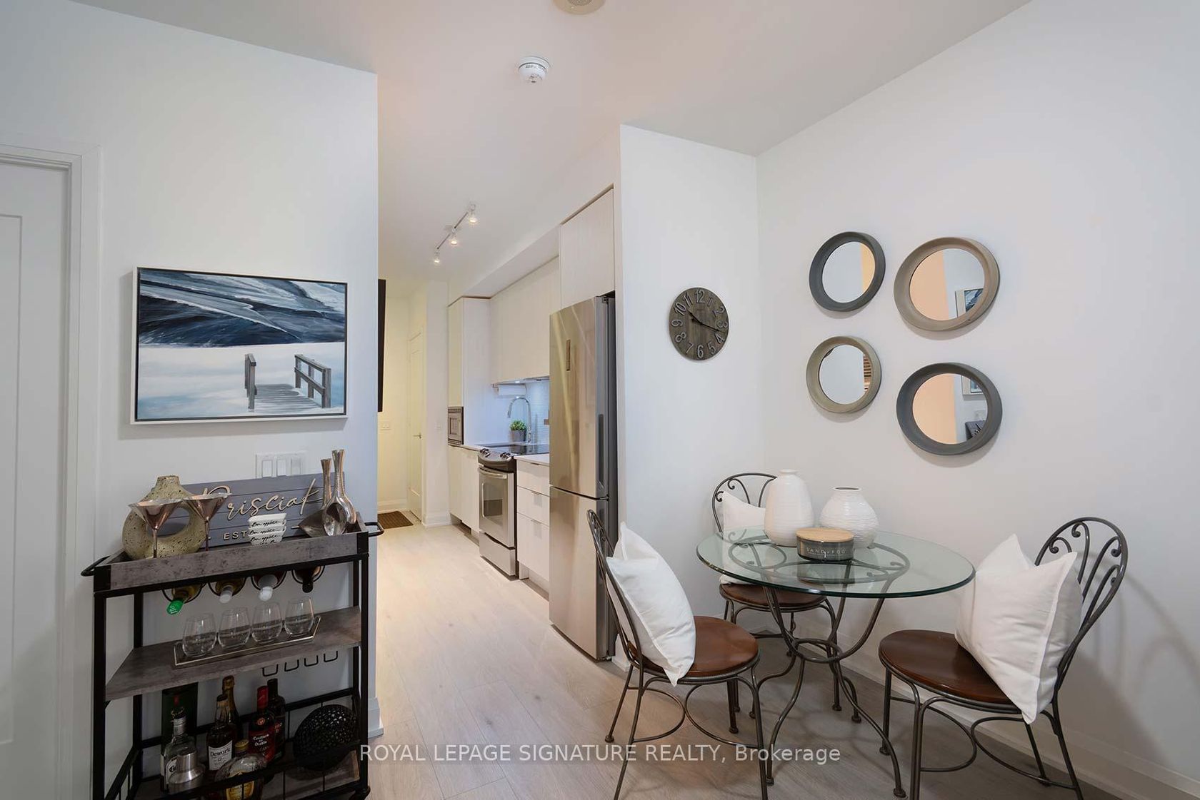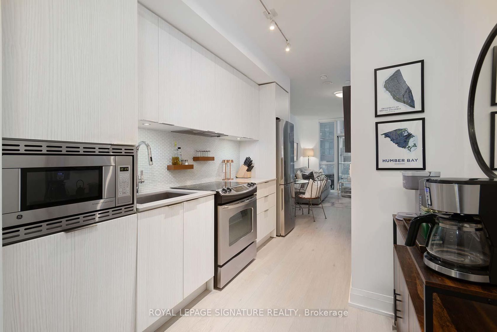 Welcome Riva del Lago - A Monarch-built luxury 16-storey boutique condo in the highly sought-after Humber Bay Shores waterfront community. This beautiful residence is ideally located just steps from Lake Ontario and offers 551 SQ FT of functional space, carpet-free layout featuring one generously sized bedroom with a walk-in closet complete with custom organizers, and one full bathroom. Wide plank, Light-coloured laminate flooring flows throughout the unit, enhancing the brig…ht and modern feel. The contemporary kitchen is equipped with contemporary cabinetry, quality appliances, quartz counters, glass tile backsplash under mount lights & an under mount sink. Enjoy your private 35 sq ft BALCONY with serene partial views overlooking Humber Bay, and the added convenience of being located next door to the building's fitness facilities. Additional features include one secure underground PARKING SPACE, a STORAGE LOCKER and Convenient Ensuite Stackable Washer & Dryer. Residents have access to exceptional amenities including a fully equipped two-storey fitness centre, indoor pool, sauna, party room, 24/7 concierge, Theatre room, "Pet-Washing" Room, Guest Suite and visitor parking. You can literally step out of the building and grab a coffee or a bite to eat, at one of the many bakeries or eateries. Conveniently situated minutes from the Gardiner Expressway, with TTC and streetcar access just steps from the building, commuting to downtown Toronto is effortless. Surrounded by scenic lakeside trails, ideal for jogging and cycling, as well as walkable dining, nearby shopping, and leisure options-this home offers the perfect balance of urban convenience and waterfront living. Please see ATTACHED FEATURE SHEET for all upgrades and information. FLOOR PLAN also attached.