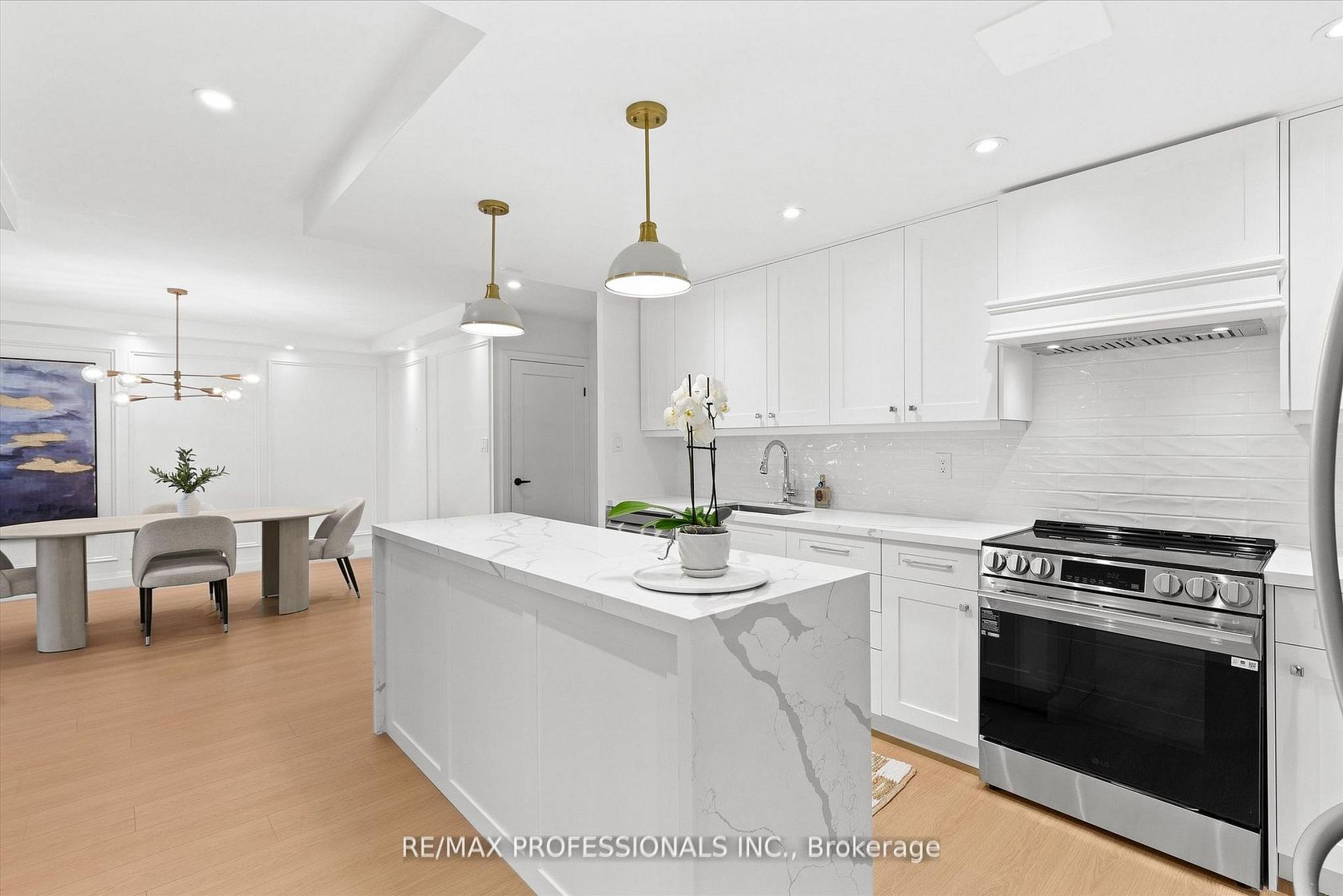 Welcome to this beautifully renovated, boutique-like 3-bedroom, 2-bathroom corner unit, offering over 1,100 square feet of modern living space. Flooded with natural light from multiple exposures, the layout feels open and airy the moment you walk in. The home features Canadian-made laminate floors throughout, elegant wainscoting, sleek pot lighting, and custom-built closets that maximize storage. The custom-designed, open-concept kitchen with a waterfall island is a true showstopper, complete with all-new appliances and refined quartz countertops-perfect for cooking, entertaining, and everyday living. Luxury is redefined in both bathrooms, featuring Italian-made tiles and tasteful modern finishes. Every room feels bright, spacious, and inviting. Fully updated from top to bottom, this move-in ready unit truly redefines luxury and comfort. Maintenance fees are all-inclusive, covering hydro, heat, water, air conditioning, Rogers cable, and high-speed unlimited internet. The building offers an impressive array of amenities, including indoor and outdoor pools, sauna, a newly renovated recreation center with gym, ping pong, squash court, golf simulator, party room, outdoor playground, basketball court, and tennis court. Ideally located next to top-rated schools and Centennial Park, with TTC at your doorstep and quick access to Highways 427, 401, and QEW, airport, shopping, golf, and more-just move in and enjoy!