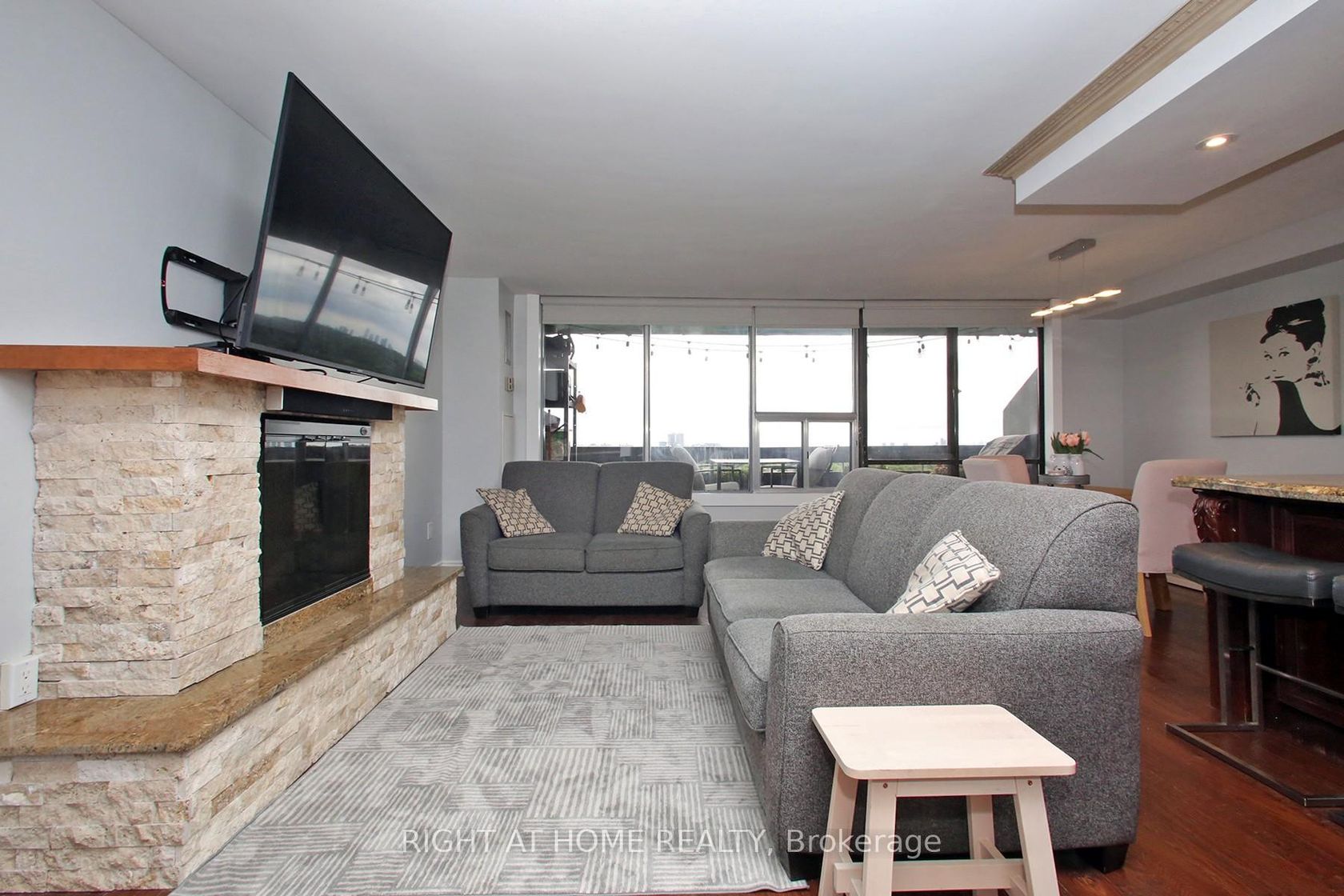Welcome to Tiffany Place in Highly sought-after Etobicoke! This stunning Multilevel unit boasts over 1300 SQFT of luxurious living space with breathtaking, Unobstructed South Ciews. Once inside, you're greeted by a sun-filled interior, accentuated by an expansive balcony, perfect for soaking in the sun, BBQing or Dining. The 3 Bed 2 Bath layout, offers ample space for families or those looking to downsize without compromising on comfort. The Built-in Fireplace in the living area creates a warm and inviting ambiance. Storage won't be an issue with plenty of options, including the built in Cabinetry and an Ensuite Storage Room. The Large in suite Laundry has plenty of storage space. Open Concept Kitchen and Breakfast Bar highlight this thoughtful layout. This unit includes 1 parking spot, has been recently painted and meticulously maintained. Located in a Great Neighbourhood, this condo combines comfort, convenience, and style. Enjoy a wide array of amenities including indoor pool, gym, tennis courts and sauna. Ideal for first-time buyers, small families, or those looking to Smart Size. Maintenance fee includes ALL UTILITIES!! Don't miss out on this opportunity to call this exquisite condo your new home!