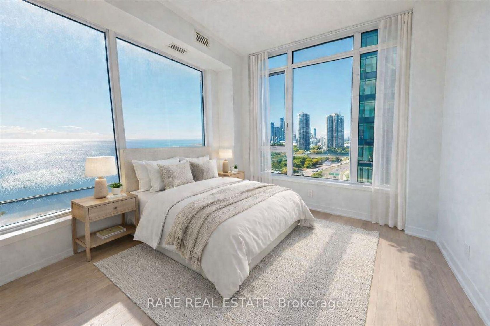 Perched high above the waterfront at Mirabella Luxury Condos, this 3-bedroom, 2-bathroom residence feels equal parts polished and effortless. Sunlight pours through every room, highlighting a bright open-concept layout and elevated finishes throughout. The best part? Panoramic, south-facing views of Lake Ontario, a constant, calming backdrop from morning coffee to golden hour. Enjoy resort-style amenities and a lifestyle that's as convenient as it is beautiful, with quick acc…ess to Hwy 427, the Gardiner, QEW, and transit, plus trails, parks, and Toronto's vibrant waterfront just steps from your door. Parking and locker included.