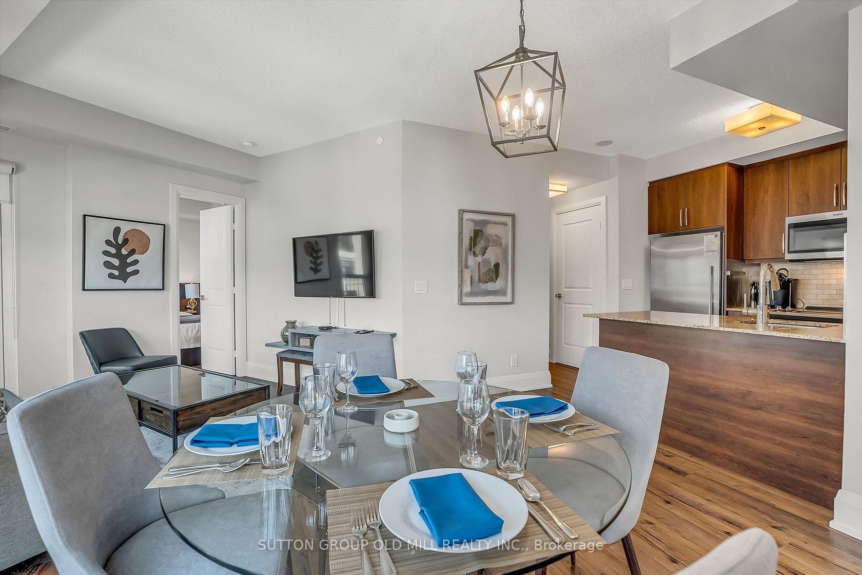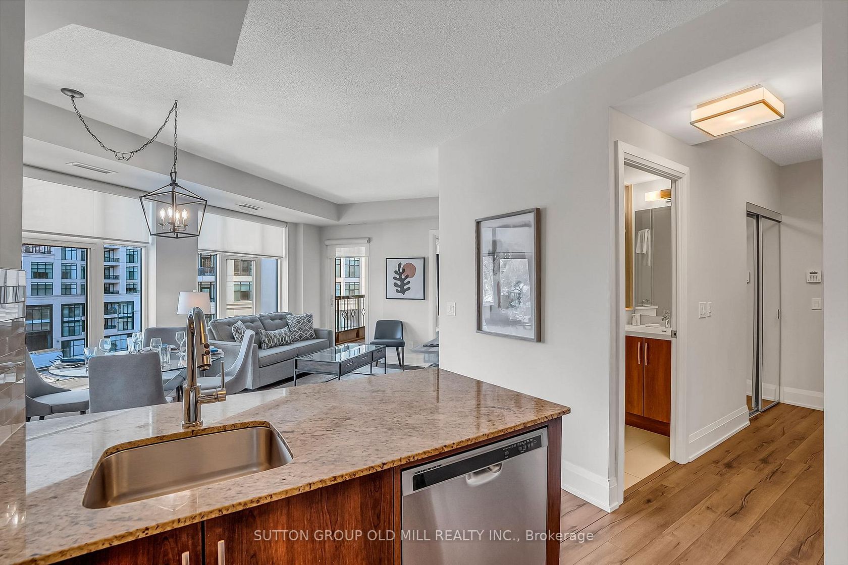 Welcome to Suite 402 at Two Old Mill Drive, a beautifully appointed residence in the heart of prestigious Bloor West Village, built by award-winning Tridel. This fully furnished two-bedroom corner suite offers approximately 815 square feet of thoughtfully designed living space with soaring 9-foot ceilings and a bright, open concept layout. The modern kitchen features rich wood cabinetry with under-cabinet lighting, granite countertops, a breakfast bar, and stainless steel app…liances. Laminate flooring flows seamlessly throughout the suite. The spacious primary bedroom includes a walk-in closet and a full ensuite bathroom, providing comfort and privacy. Step out onto the balcony and enjoy a gorgeous, tree-lined view on the peaceful side of the building. Unbeatable location-steps to transit, parks, and in the midst of the vibrant shops, cafés, and restaurants of Bloor West Village. Being right on the subway will get you to Toronto's dynamic downtown in approximately 15 minutes. This exceptional building offers resort-style amenities including 24-hour concierge, indoor saltwater pool, gym, yoga room, meeting room, theatre, guest suites, and an incredible 360-degree rooftop terrace with stunning views of the Toronto skyline. Parking and all furnishings are included, offering exceptional value. Ideal for investors or end-users seeking a true turnkey opportunity. Just move in and enjoy.