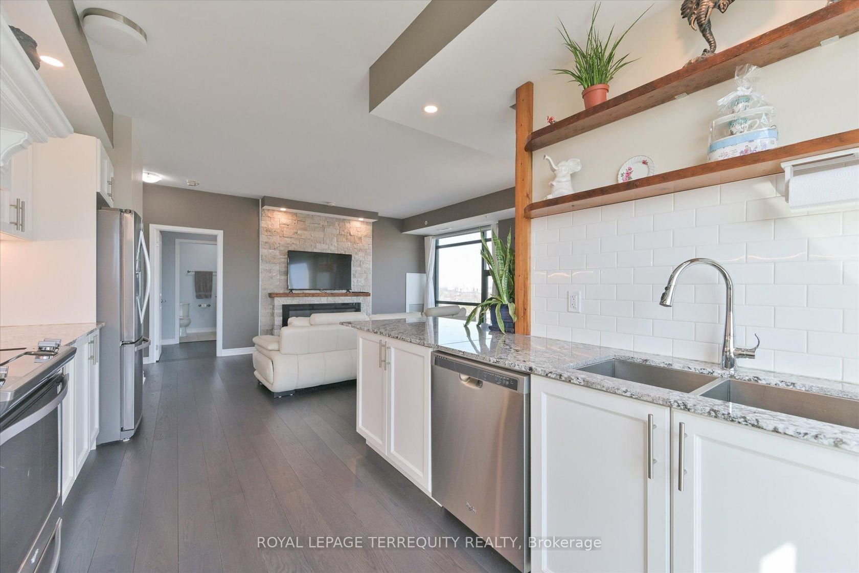 Experience the perfect blend of city vibrancy and suburban value at 2522 Keele St, Unit 508a newly renovated 2-bedroom, 2-bathroom suite in the sleek and well-maintained Visto Condominiums, located in Toronto's Maple Leaf community. Ideal for first-time buyers, young professionals, families, and retirees looking to smart-size or upgrade their lifestyle. This move-in-ready home offers 1,022 sq ft of carefully customized space, featuring a reconfigured layout that expands the p…rimary bedroom into a peaceful retreat and opens the living area for modern, flexible living. 9-ft ceilings and floor-to-ceiling large windows with north and east exposures flood the space with natural light, highlighting the fresh paint, upgraded engineered hardwood flooring, and refined finishes throughout. Enjoy a cozy electric fireplace with stone surround, a gourmet kitchen with upgraded granite countertops, a high-performance Vent-A-Hood range hood, custom woodwork around the sink, and a sleek subway tile backsplash. Large sliding doors lead to a private balcony - perfect for morning coffee or evening wind-downs. Pot lights with dimmer switches and app-controlled, color-adjustable bulbs let you set the perfect mood - whether white, warm, or vibrant hues. Additional touches include recessed lighting, a chic dining chandelier, open shelving, and a mirrored entry closet. Includes one parking space and one locker. Just a 5-min drive (3.5 km) to Yorkdale Mall and close to Hwy 401, Humber River Hospital (1.23 km), Maple Leaf PS & Weston CI. Four nearby parks offer tennis courts, splash pads, playgrounds, and trails for active living. Bonus: Seller will pay for the purchase of an IKEA Pax wardrobe system to complete the primary bedroom. Extras: Visitor parking, modern elevators, and nearby police and fire services. A rare find in a connected, growing neighborhood.