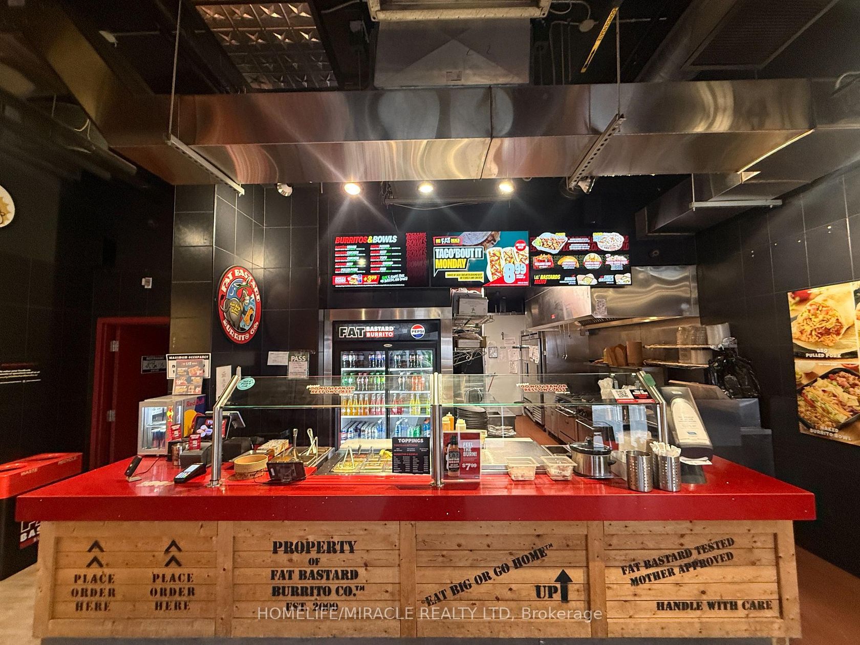 FAT BASTARD BURRITO Business in North York is For Sale. Located at the intersection of The Pond Rd/Haynes Ave inside York University one of the busiest campus, very high foot traffic from students, professors, student residents and visitors year around. Business with so much opportunity to grow the business even more. Yearly Sales: Approx. $500,000, Rent: $5420/month incl. TMI & HST, Lease Term: existing 10 years + Option to Renew, Royalty: 8%, Advertising: 2%.