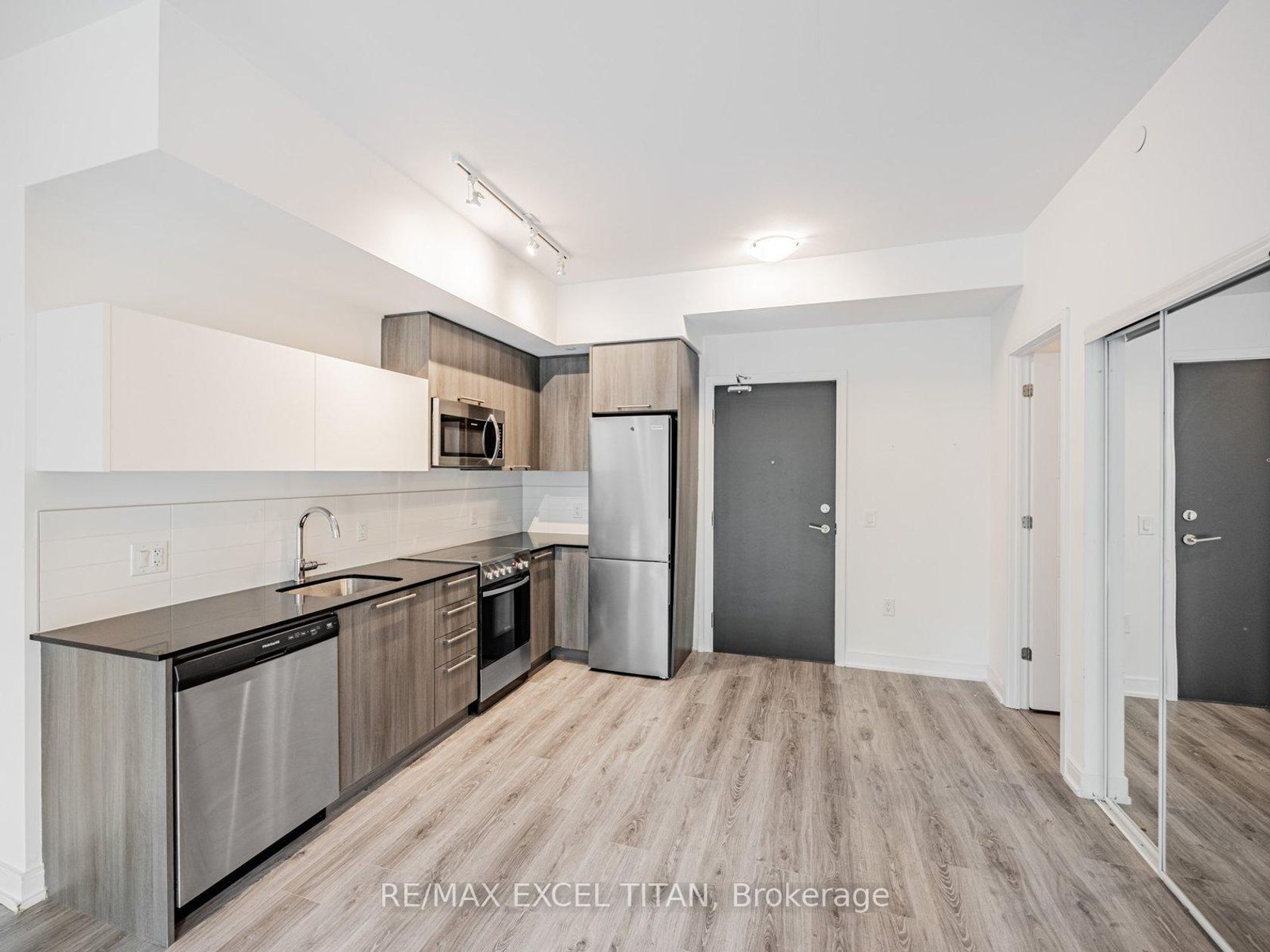 PRICE INCLUDES 2 PARKING SPACES AND 2 LOCKER UNITS. Welcome to the desirable "Queensview - Backyard Condos. Enjoy the sleek look of laminate floors and the durability of Caesar stone countertops in the chef's kitchen, equipped with stainless steel appliances, valance lighting, and a beautiful backsplash, both functional and aesthetically pleasing. The generous den offers flexibility for a home office, studio, or additional lounge space. Residents enjoy access to an array of p…remium amenities, including a cutting-edge fitness centre, kids play room, full-time concierge,pet spa and 24-hour security. A true blend of contemporary comfort and urban convenience in one of the city's most desirable communities. Total Living Space Is 650 Sq.Ft (589 Sq.Ft. Indoor + 61 Sq.Ft. Balcony). Vendor to consider providing a first mortgage for up to 3 years, fully open, at 3.95% interest on an interest only basis, or 25 year amortization period, at the purchasers choosing.
