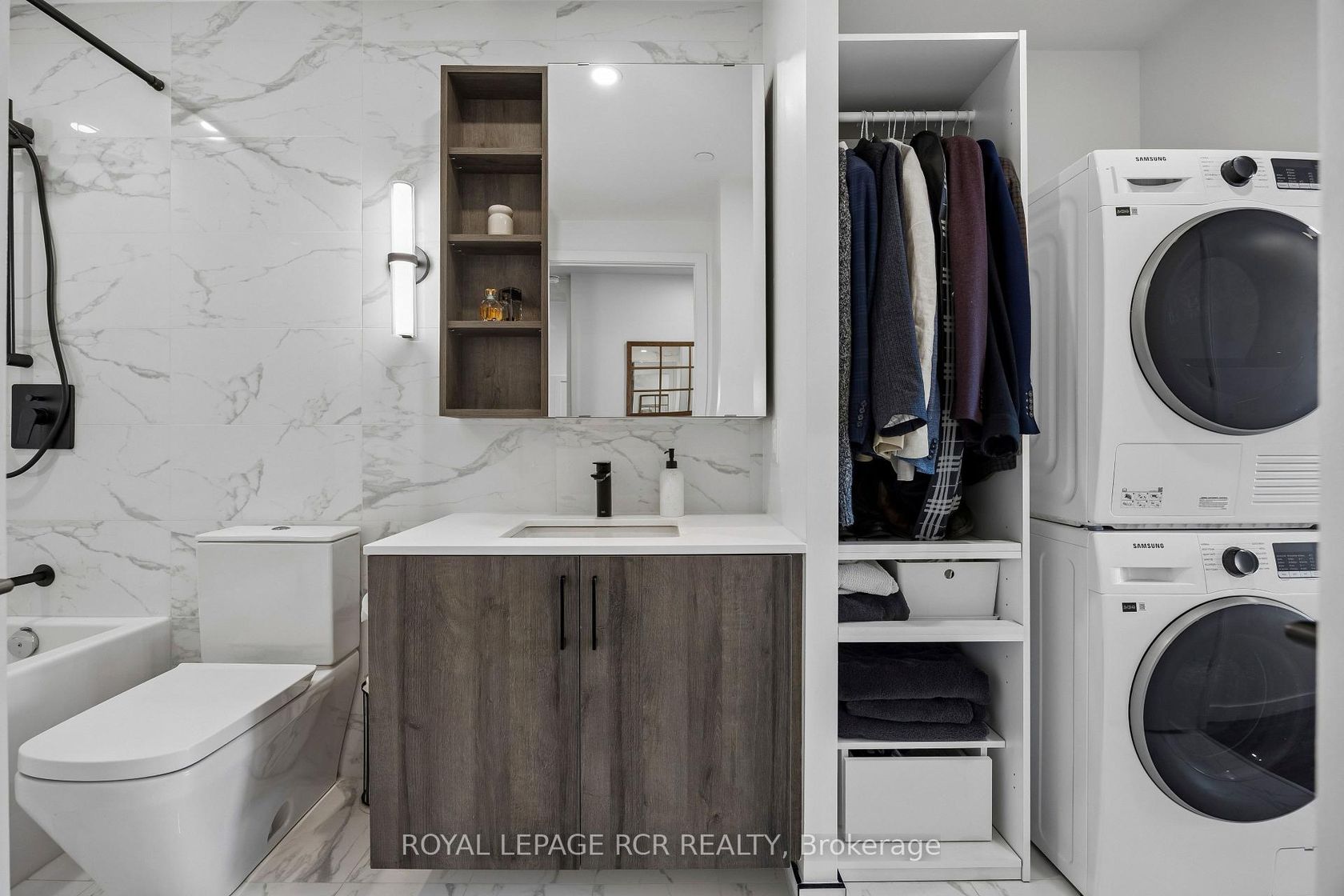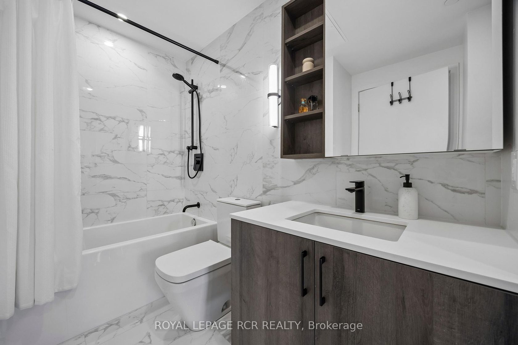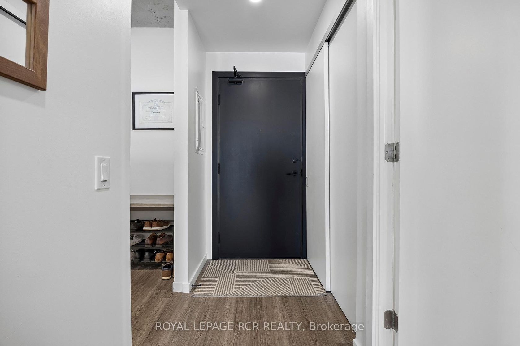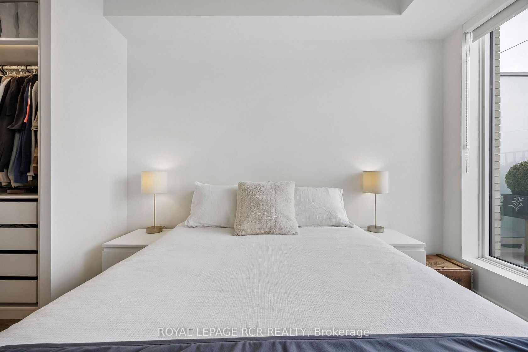 Welcome to a unique 675sf 1 bed + den residence in Etobicoke's newest boutique landmark, Reina Condos. As the largest one bedroom floorplan in the building, this thoughtfully laid out unit boasts a bright open living area with floor to ceiling windows, upgraded semi sheer blinds for privacy, and extensive space for entertaining and relaxing. The versatile den features a sliding door, providing a private retreat for a home office or functional second bedroom. At the heart of t…he home is a chef-inspired kitchen with integrated appliances including a full-size dishwasher, stainless steel convection oven, induction cooktop and an upgraded overhead microwave. The custom-built island with solid wood counters and seating offers flexible counter space for cooking and entertaining while providing significant additional under-counter storage. The primary bedroom showcases tranquility and elegance with blackout blinds, a custom walk-in closet with ample storage and in-closet lighting. Walk directly from the bedroom through to the expansive washroom with floor to ceiling marble tile and full-size stacked washer dryer, offering both privacy for the master bedroom and easy access for guests. An at-grade parking space permit is available with the unit, along with below grade visitor parking for guests. Reina is an ownership-driven building offering a true sense of community with amenities including a gym, kids play area, yoga room, outdoor barbecue, pet wash, and a stylish party room. Located on The Queensway, you're steps from iconic spots like San Remo Bakery and Tom's Dairy Freeze, with Mimico GO, Royal York TTC Station, and the Gardiner nearby. Experience modern, community-driven, expansive living at Reina Condos.