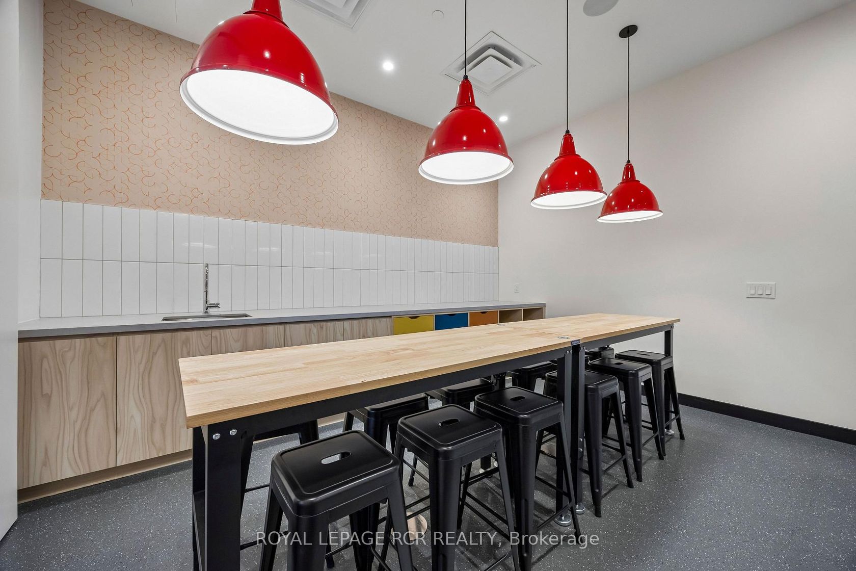 Welcome to a unique 675sf 1 bed + den residence in Etobicoke's newest boutique landmark, Reina Condos. As the largest one bedroom floorplan in the building, this thoughtfully laid out unit boasts a bright open living area with floor to ceiling windows, upgraded semi sheer blinds for privacy, and extensive space for entertaining and relaxing. The versatile den features a sliding door, providing a private retreat for a home office or functional second bedroom. At the heart of the home is a chef-inspired kitchen with integrated appliances including a full-size dishwasher, stainless steel convection oven, induction cooktop and an upgraded overhead microwave. The custom-built island with solid wood counters and seating offers flexible counter space for cooking and entertaining while providing significant additional under-counter storage. The primary bedroom showcases tranquility and elegance with blackout blinds, a custom walk-in closet with ample storage and in-closet lighting. Walk directly from the bedroom through to the expansive washroom with floor to ceiling marble tile and full-size stacked washer dryer, offering both privacy for the master bedroom and easy access for guests. An at-grade parking space permit is available with the unit, along with below grade visitor parking for guests. Reina is an ownership-driven building offering a true sense of community with amenities including a gym, kids play area, yoga room, outdoor barbecue, pet wash, and a stylish party room. Located on The Queensway, you're steps from iconic spots like San Remo Bakery and Tom's Dairy Freeze, with Mimico GO, Royal York TTC Station, and the Gardiner nearby. Experience modern, community-driven, expansive living at Reina Condos.