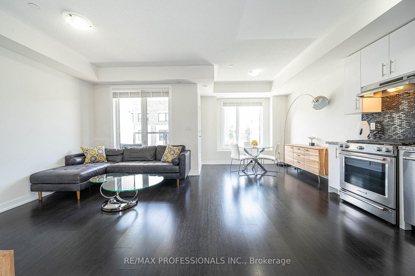 Welcome to Mimico!!! 1245sqft Modern and open Townhouse with 3 Balconies, including an oversized Roof top terrace. One of the biggest units in the complex. Perfect;y situated in the complex away from the Main Street and garage entrance. Approx 300 Sqft Rooftop Balcony With Gas Bbq Hook-Up. Great For Entertaining With A View Of The Cn Tower! Lots of restaurants and shopping nearby. Granite counters and Stainless Steel Appliances. 5 Minute walk to Mimico Go Station.